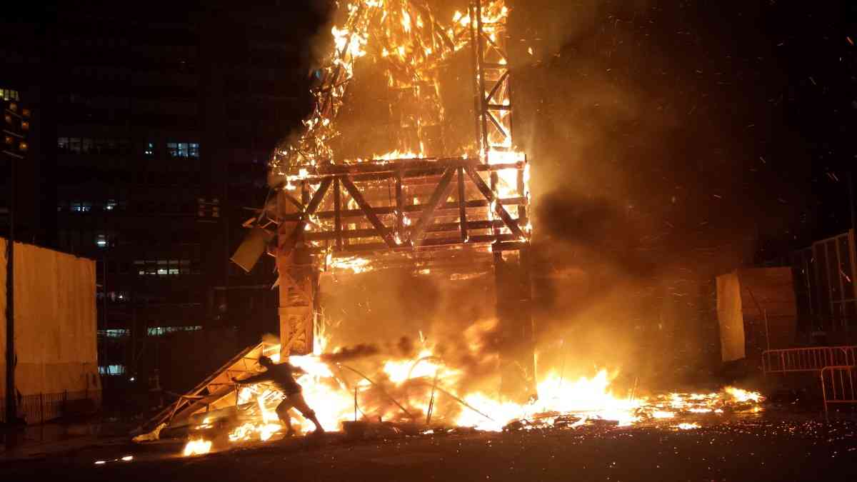 El viento dirigió las ascuas hacia el Ayuntamiento, lo cual libró a los miles de espectadores de la lluvia de pavesas que hubiera provocado más problemas.