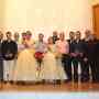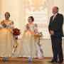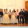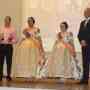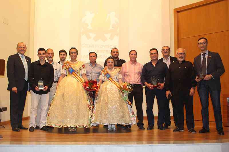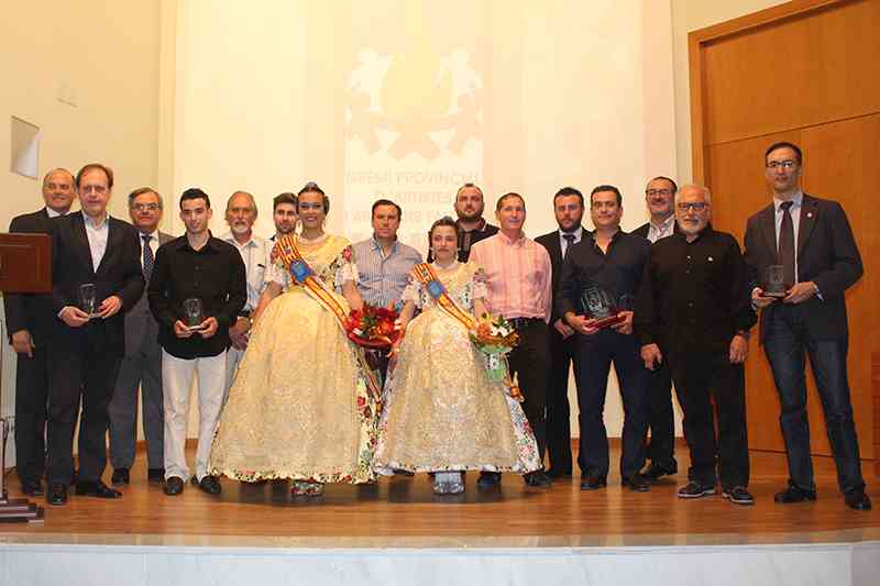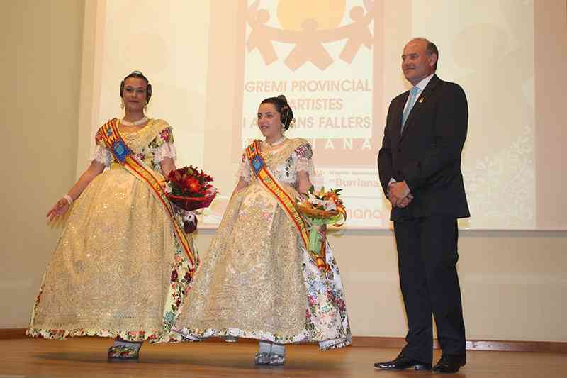 Las Reinas Falleras de Burriana, el presidente del gremio y el presentador, Vicent Blasco.