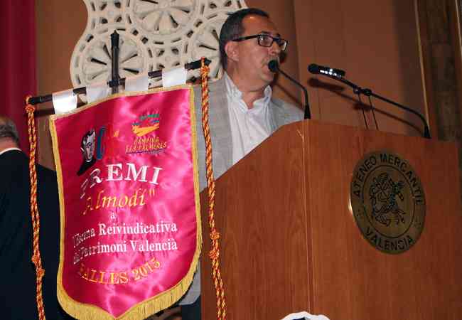 Vicente Martínez, galardonado con el premio "Almodí" agradeciendo el premio recibido