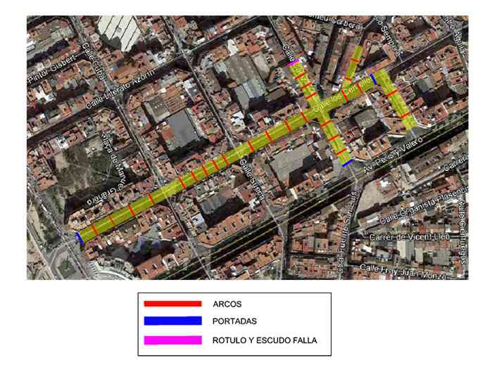 Las calles Cabo Jubi, Sornells, Centelles y Cádiz estarán iluminadas con 600.000 led de alta generación y alta luminosidad, sistema de iluminación RGB, tres portadas en las cabeceras, cuatro escudos de la falla, cuatro títulos de la falla y 25 arcos modulares. Estos son algunos de los datos que integran la apuesta de la comisión ruzafeña, cuyas luces están a cargo de la firma Iluminaciones Granja, de Granja de Rocamora (Alicante). Durante la presentación se han podido ver imágenes de los arcos que se instalarán, así como de una recreación de cómo quedará el conjunto en las calles de la demarcación, y que pueden observan en la galería que acompaña a esta noticia.