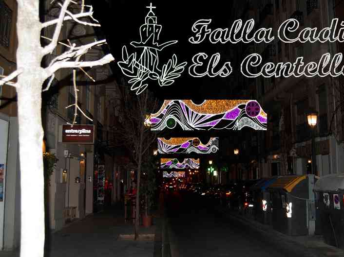La comisión de la falla Cádiz-Los Centelles ha presentado hoy el proyecto de iluminación artística que instalará en su demarcación en las Fallas de 2019, con la que competirán en la categoría A del concurso de la Junta Central Fallera.