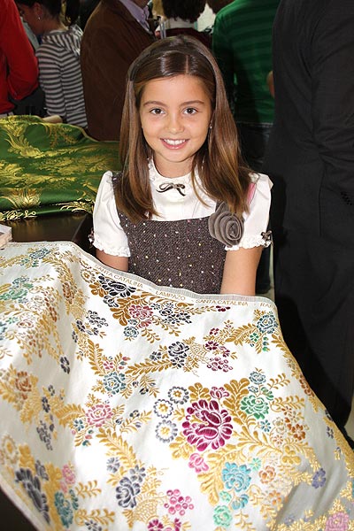 Rafael Catalá, S.A. confecciona el tejido "Avignón", característico del siglo XVIII, sin metales para la corte de honor infantil. Este diseño se ha elegido por ser uno de los más representativos de la industria textil, con 240 años de tradición sedera, y porque el tamaño del mismo se adaptaba a la fisonomía de la corte.