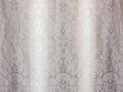 La empresa confecciona un listado degradado con un dibujo recuperado del patrimonio histórico valenciano para el segundo traje de la corte. El tejido es un damasco de viscosa cuyo acabado final es parecido al de la seda.