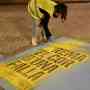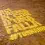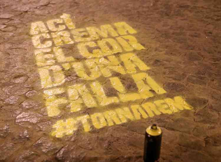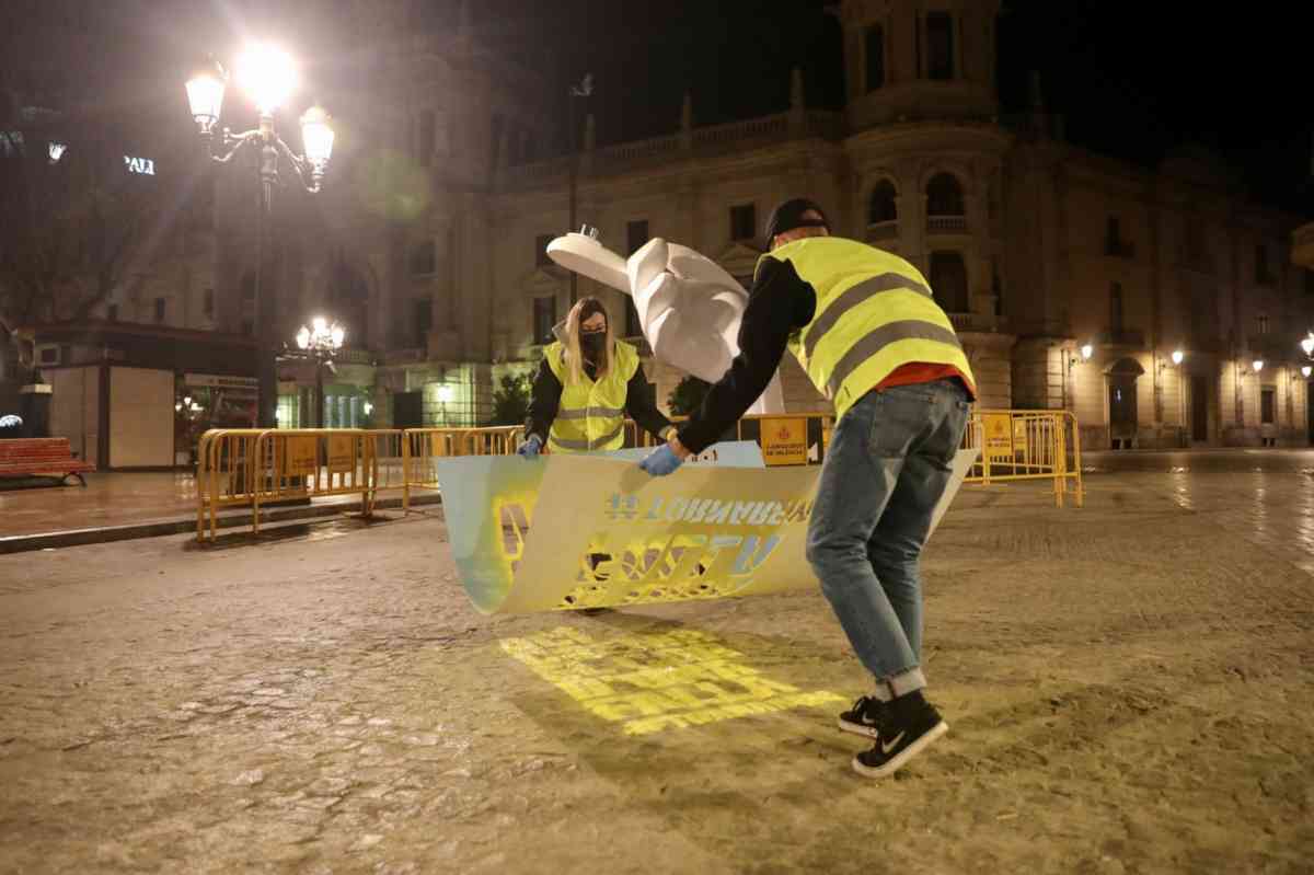 El que hubiera sido el día más importante de esta semana fallera, la plantà de las fallas, ha amanecido con un mensaje evocador y reivindicativo en el asfalto de cada una de las comisiones del censo de la Junta Central Fallera.