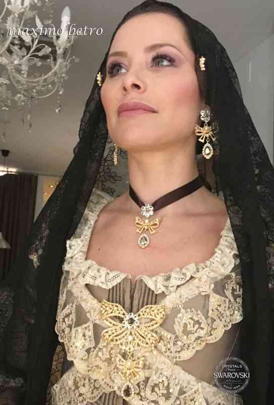 En las Fallas de 2019, la cantante Soraya Arnelas, fallera de honor de la comisión Sueca-Literato Azorín, lució en la ofrenda floral a la Virgen de los Desamparados de Valencia un aderezo de Máximo Betro estilo siglo XVIII en forma de lazo, inspirado en joyas de la época pertenecientes a la Casa de Alba. El aderezo se realizó en bronce, con baño en oro de 24 Kilates, ‘totalmente antialérgico’, con una elaboración a mano del metal para conseguir fondos mates y biseles brillo. La obra se engastó con más de 600 cristales de Swarovski® redondos, cuatro lágrimas en color light colorado topaz y más de 150 perlas cultivadas.
