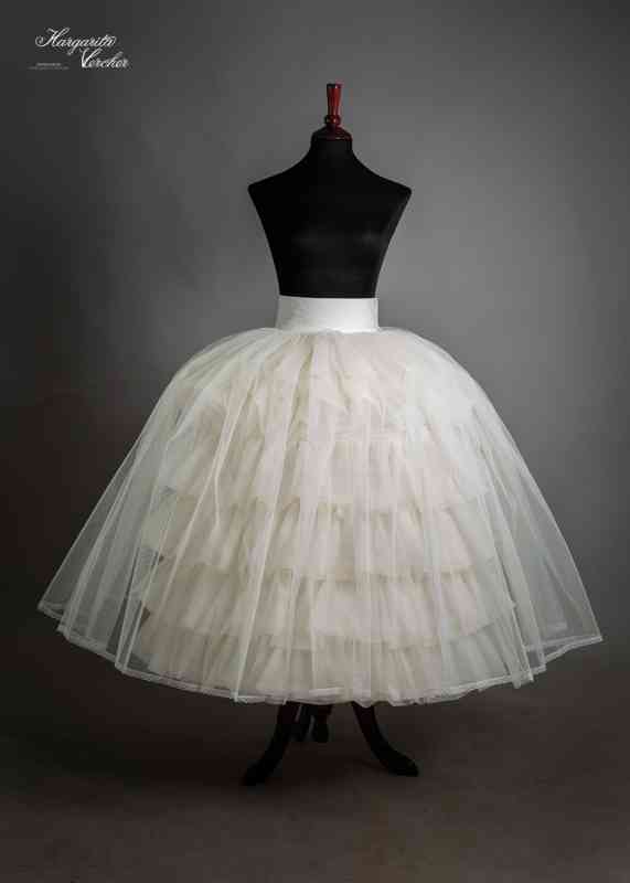El tejido de los cancanes de Margarita Vercher está confeccionado totalmente al bies. “Este tipo de confección, realizada de forma artesanal, otorga al cancán la flexibilidad que necesita. Además, los aros que utilizamos en nuestros cancanes son de alta flexibilidad y resistencia. Así el movimiento de la falda es más flexible y sentarse no es ningún problema”.