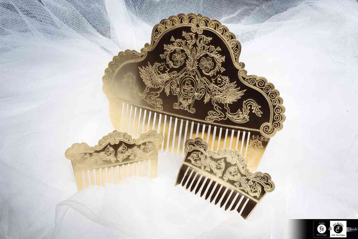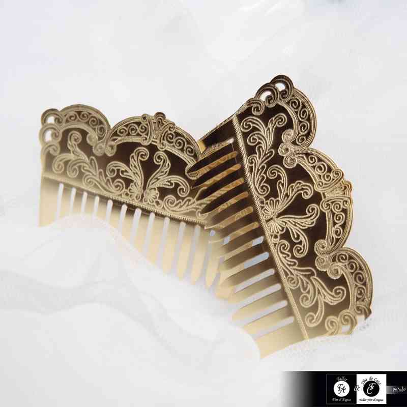 “Este es el decimocuarto año que hemos realizado las peinetas de la Crida para la Fallera Mayor de Valencia, y en muchas ocasiones también para la Fallera Mayor Infantil”, cuentan.