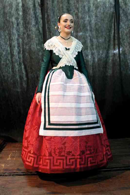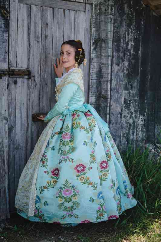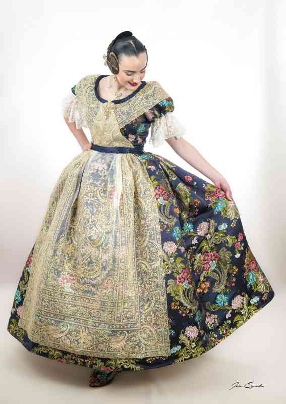 Julia llegó a la firma de Eduardo Puertes e Inmaculada Calap a través de su tío Jorge cuando fue fallera mayor infantil, y hoy son ya de la familia. «Inma para mí es una hermana, confío en ellos». Nos explica que la firma tiene identidad propia, gusto por resaltar la indumentaria más tradicional, todo «con sello».
