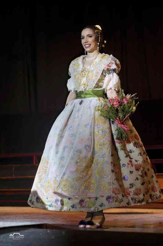 Para este año, Carla vistió tres trajes de Eugenia Puertes, además de un traje de su madre como fallera mayor que se arregló para ella; un modelo de tonalidad azul con flores en dorado.