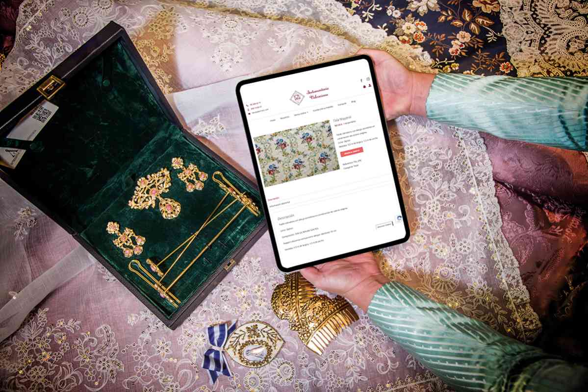A través de las galerías de la tienda online en www.el1iel2.com, el internauta podrá navegar por un amplio catálogo de telas de valenciana de diferentes materiales y dibujos. También aderezos, desde los más tradicionales a los más modernos, con todo tipo de modelos, así como juegos de peinetas para tres moños y un solo moño. Manteletas de diferentes estilos y una gran variedad mantillas completa un catálogo amplio y de piezas destacadas.