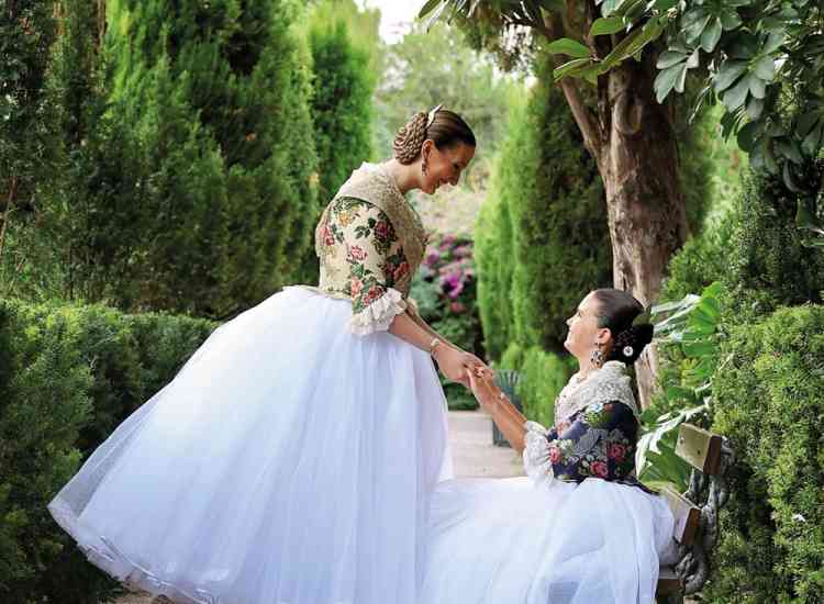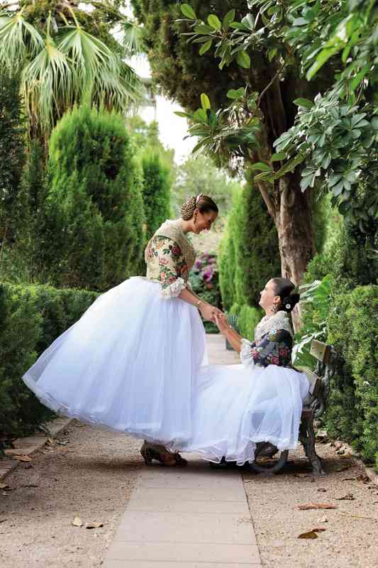 MAVIMAR es una empresa de raíces familiares que ha revolucionado la indumentaria valenciana con su innovadora forma de ahuecar mediante cilindros flexibles, sin utilizar materiales rígidos, consiguiendo una característica ligereza y aportando un vuelo natural a las faldas. En las instantáneas de este reportaje fotográfico podemos ver a las que fueron máximas representantes de la fiesta fallera en 2023, Laura Mengó y Paula Nieto, luciendo el Alçaor Modelo FMV, cada uno personalizado con el detalle de sus nombres bordados.
