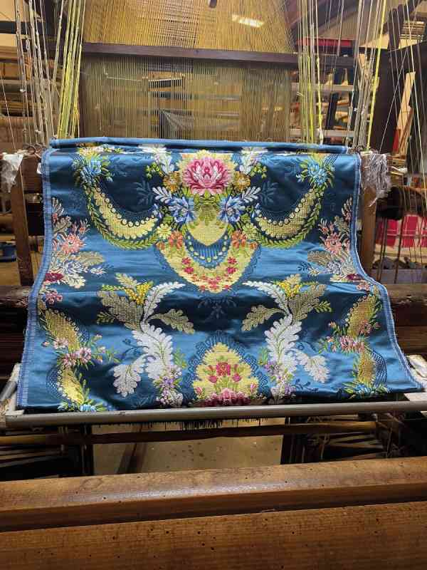 La posterior visita a los telares confirmó que el proceso seguía, y ver cómo los hilos de seda y metal se entrelazaban para dar vida al dibujo fue un momento de profunda emoción. Nadie podría prever entonces que la naturaleza estaba a punto de hacer acto de presencia con toda su crudeza.