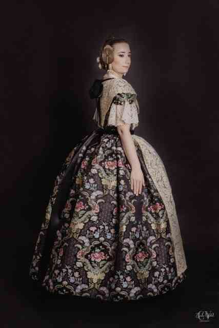 La indumentaria valenciana es pasión y artesanía. Sin embargo, en ocasiones, un traje trasciende su función para convertirse en un símbolo de resistencia. Este es el caso del emblemático traje que luce Laura Estevan Pons, nacido de las manos expertas de la firma Amparo Fabra.