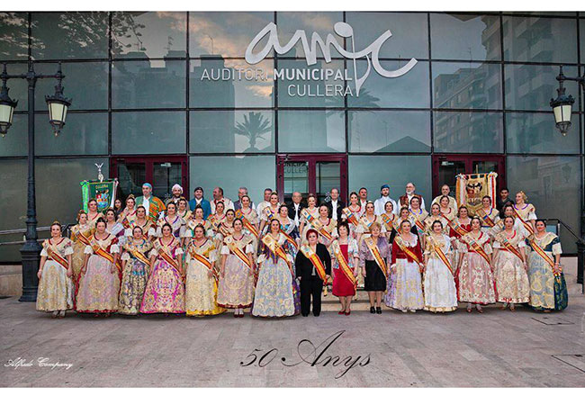 Un desfile previo les llevaría a todos los falleros y acompañantes hasta el paseo donde se lanzaría un castillo de fuegos artificiales, como preámbulo de una gala presentada por Clara Castelló quien fue llamando a todos los presidentes de estos cincuenta años de existencia, comenzando por el actual, Gerardo Piris y Cabanilles, quien haría entrega de la insignia del 50 aniversario a todos sus antecesores.