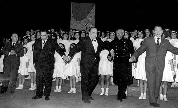 Durante las décadas de los años 40 y 50 del siglo pasado, la música fallera toma un cariz más organizado y de carácter religioso, es por ello por lo que encontramos la creación del género del himno fallero, donde poco a poco las comisiones engrosan su patrimonio cultural con una pieza que sea representativa de la comisión. En esta época encontramos composiciones como Casal Faller del maestro Bernabé Sanchis con letra de José María Alcácer, y en 1944 el Himno Infantil Fallero con música de Francisco Andrés y letra de Ismael Serneguet.