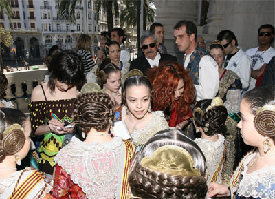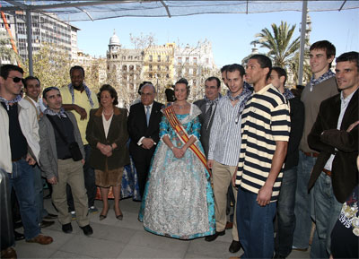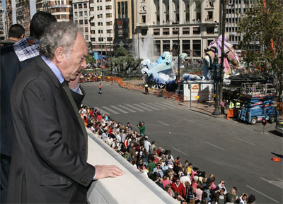 Otros personajes del ámbito judicial se asomaron al balcón, en este caso, Juan Luis de la Rua, Presidente del Tribunal Superior de Justicia y el fiscal General del Estado, Conde de Pumpido, junto a otros miembros del tribunal. No faltaron los políticos de izquierda y derecha, en una época tan propicia para "hacer camino". También pudimos ver fugazmente a la concejala de IU que tan poco interés se le vio por los falleros en el "afaire" de las luces de Sueca. Las juntas locales de Sagunto y Alberique también visitaron el balcón y disfrutaron de esta mascletà.