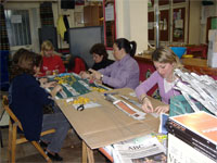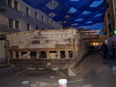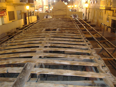 Para completar la instalación, la comisión está montando todo lo que este enorme mole de madera va a llevar acoplado, para que resulte lo más real a lo que fue en realidad, para ello, los falleros están fabricando unas clóchinas enormes que irán prendidas en sus laterales y cada una de ella llevará un tema incluido, como podrán apreciar por las fotos.