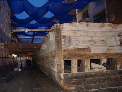 El clochinero lleva el nombre de María de la Concepción, y en el 2005 fue sacado del mar donde ha permanecido sumergido un año, justamente frente al Muelle Este del puerto de Valencia. Antes de ello, este criadero ha permanecido activo durante 99 años y tan solo existen seis como él en las aguas mediterráneas, el resto, hasta 22, son totalmente diferentes. Para hacerse una idea de lo que allí se va a montar, diremos que su peso al sacarlo del agua era de 58 toneladas y que una vez secado se ha quedado en 39 Tn, que con sus 20,2 metros de largo por 4,12 metros de ancho, ha necesitado de enormes grúas y potentes remolques para su traslado hasta la calle donde se está montando.