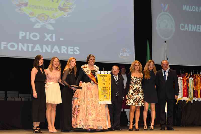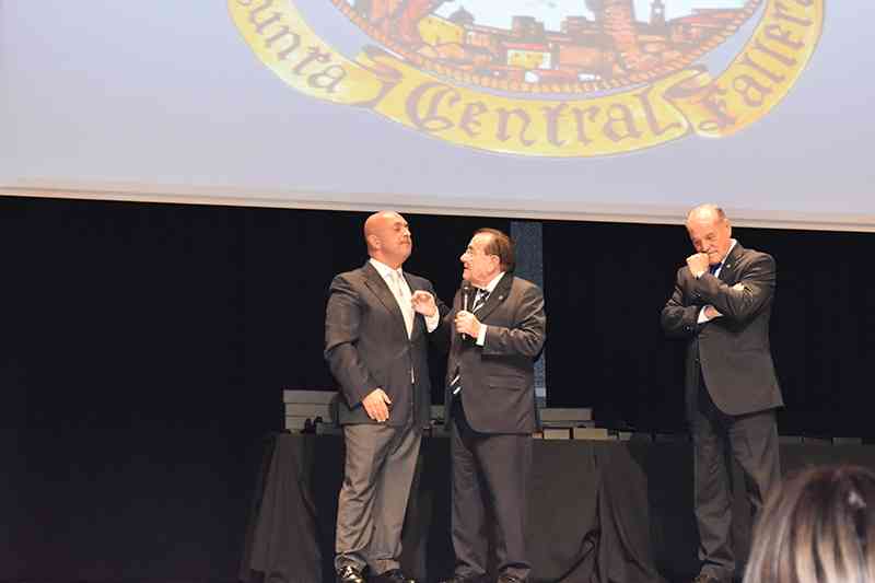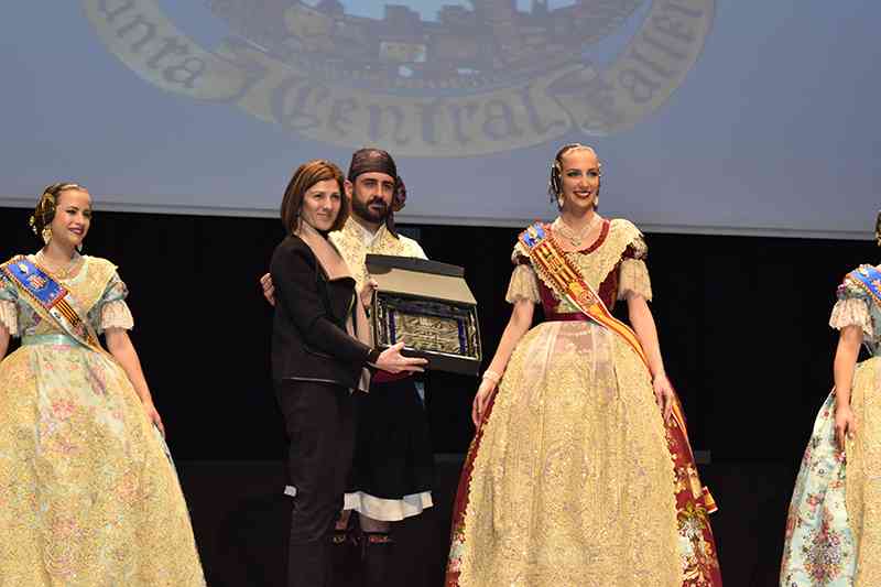 La Fallera Mayor de Valencia, Raquel Alario, acompañada por su Corte de Honor, presidió este acto junto con el presidente de la JCF, Pere Fuset y la presidenta del Palacio de Congresos, la primera teniente de alcalde, Sandra Gómez. Asimismo, ediles de la corporación, como Amparo Picó, no quisieron dejar pasar la oportunidad de asistir a una multitudinaria cita que, este año, cambiaba de estructura y de ubicación.