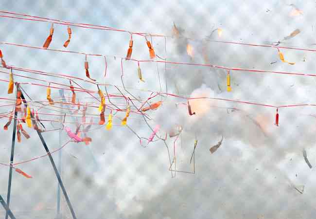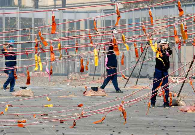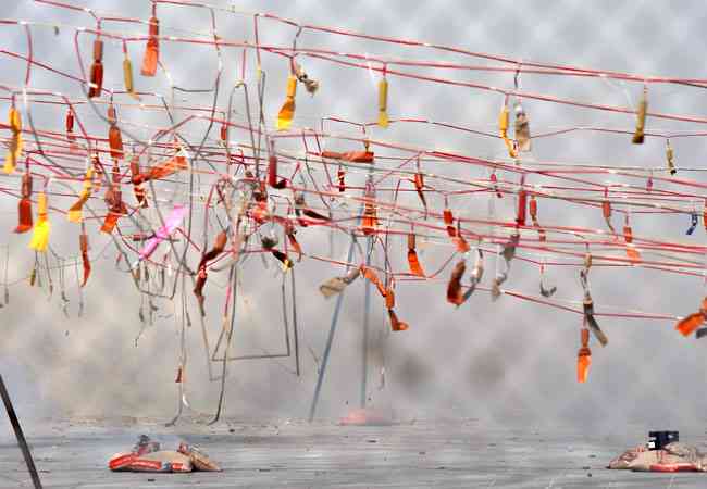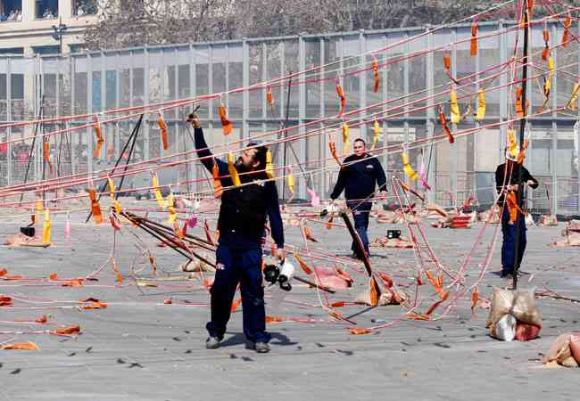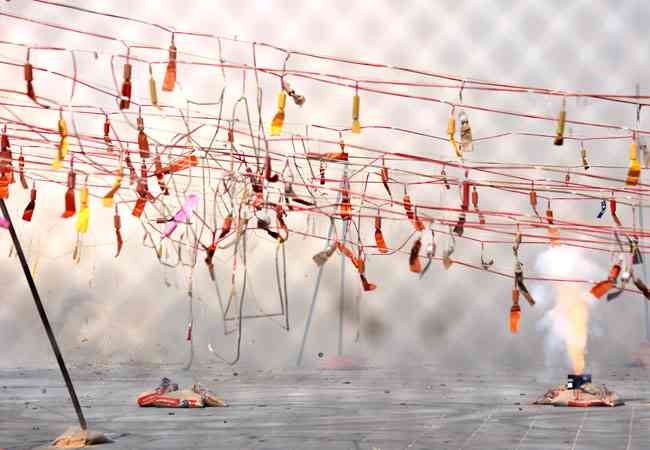La jornada parecía premonitoria. Todo aquel que se acercaba a la plaza miraba con extrañeza la disposición del disparo. Nada de la estética habitual, simétrica y perfectamente identificable. Baterías excesivamente juntas y tiras destensadas, algunas de ellas con apenas 30 centímetros de distancia al suelo.