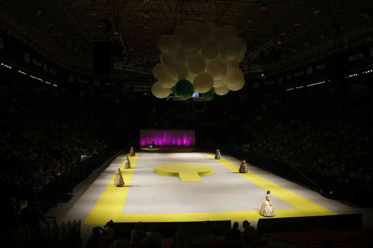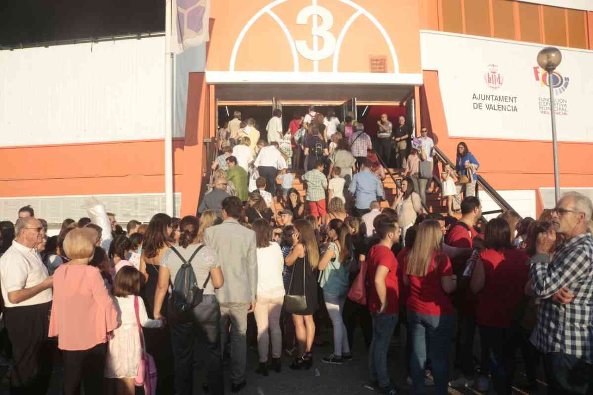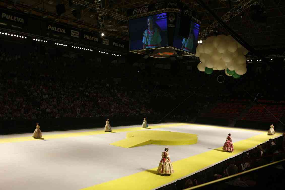 Desde las 18 horas los aledaños del pabellón eran un hervidero de gente, la cual esperaba a entrar y ocupar su localidad para la gran noche que tenían por delante. Allí es donde pudieron obtener el folleto de mano que todos los años edita Actualidad Fallera con motivo de esta cita ineludible para el mundo de la fiesta del fuego, y cuya portada venía protagonizada por el trono de las que serán máximas representantes del colectivo: la Cadira d’Or.