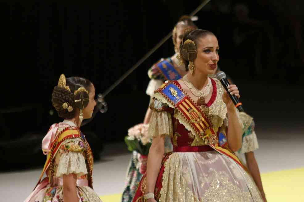 La presencia de Raquel y Clara María en la pista fue recibida con aplausos y expectación, así como con emoción, la misma que ellas mostraron en un discurso que registró momentos de gran sentimiento por parte de las máximas representantes de la fiesta, llegando incluso a derramar no pocas lágrimas en el caso de Clara María al referirse a su familia. También el abrazo y las continuas muestras de complicidad entre ambas falleras fue alabado por el público.