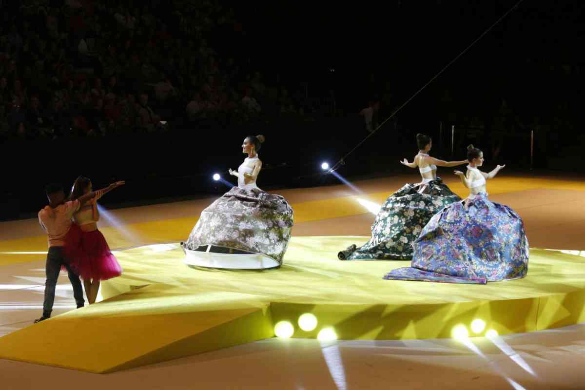 ‘La mayor exhibición’ fue el título del primero de los números de la noche, en la que bailarines y una acróbata acompañaron a las candidatas mayores e infantiles, que hicieron su aparición en la pista al ritmo de diversas piezas musicales, bailando y participando de esta coreografía inicial. Más tarde llegarían ‘Todo un mundo’ y ‘Como arte de magia’.