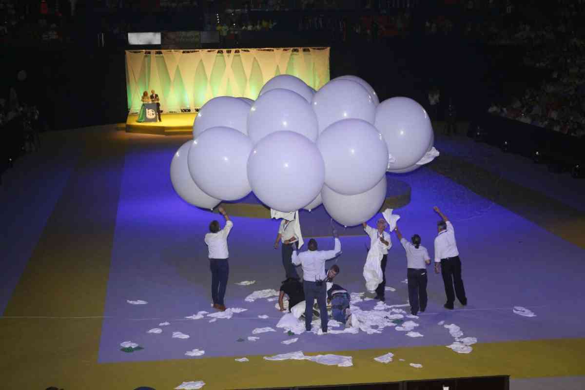 Antes llegó una de las anécdotas por obra y gracia de un complicado elemento de escenografía que dio que hablar, y mucho, durante la gala. Un ramillete de enormes globos, recurso escénico y elemento utilizado para acrobacias, complicó la visión a una parte de la grada, que hizo notar su incomodidad, de la que incluso dieron cuenta los presentadores. Además, para desalojarlos de la pista antes de leer el veredicto del jurado, se tuvo que recurrir a pincharlos uno a uno. Una ‘globotà’ en toda regla.