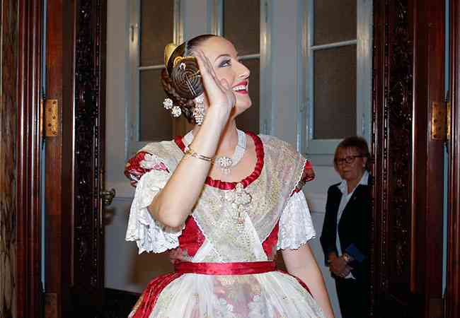 La Reina de las Fiestas de la Magdalena de Castellón, Carla Bernat Pascual, subía los escalones acompañada por las notas de ‘Rollo i Canya’. No ha acudido en esta ocasión la Bellea del Fòc d’Alacant, Sofía Escoda, que asistía a los actos en Alicante con motivo de la Volvo Ocean Race.