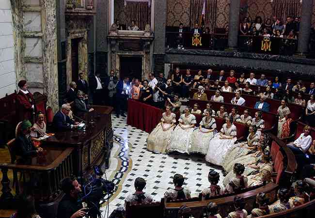 El hemiciclo del Ayuntamiento de Valencia acogió durante la tarde del 11 de octubre la proclamación de Rocío Gil Uncio y Daniela Gómez de los Ángeles como Falleras Mayores de Valencia 2018. El mundo de las Fallas fijaba su mirada en la casa consistorial, lugar elegido para uno de los instantes más emotivos del reinado de las máximas representantes de la fiesta.