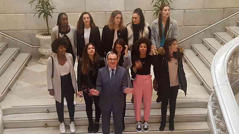 El equipo senior femenino del Valencia Basket ha estado presente también en este día con su presidente, cuerpo técnico y directiva. Han disfrutado con el disparo y se les ha felicitado por sus éxitos deportivos.