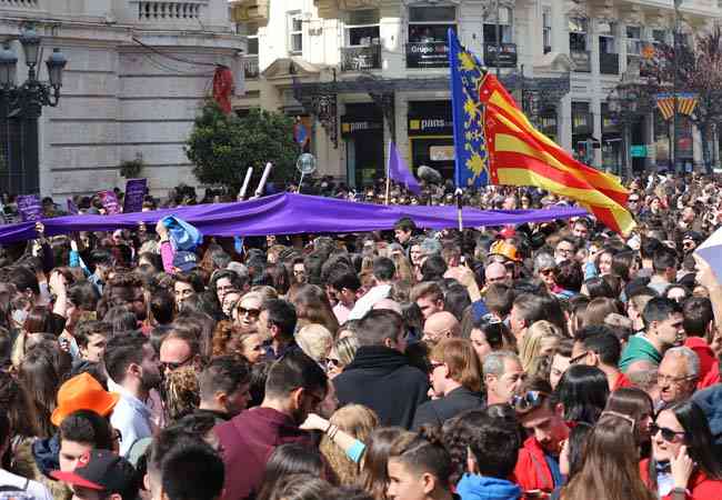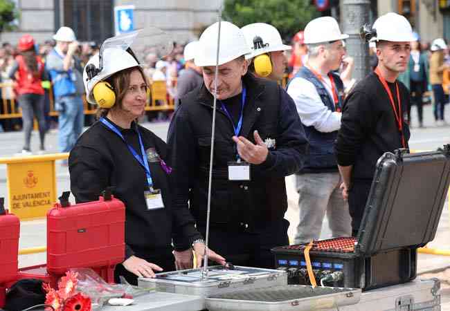 Día conmemorativo en la plaza, donde la propia Fallera Mayor de Valencia luciría un lazo morado en homenaje al día de la mujer trabajadora, y donde en el centro de la plaza, una mujer, una profesional de altura, capitaneaba el disparo, pero no por su condición de mujer, Mª José Lora Zamorano lo hacía principalmente por la condición de haberse ganado con creces el estar al frente del disparo y de su empresa, Caballer FX-Global Foc, por derecho propio.