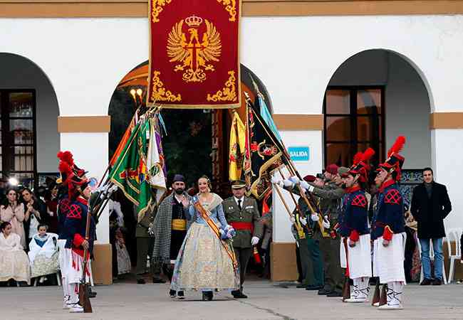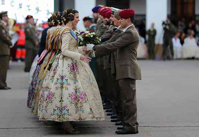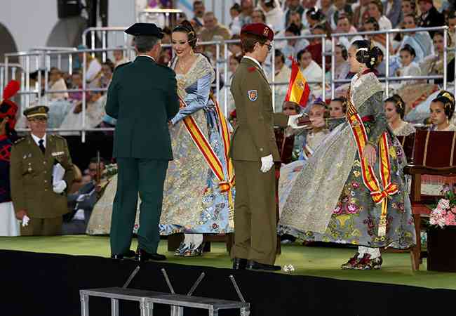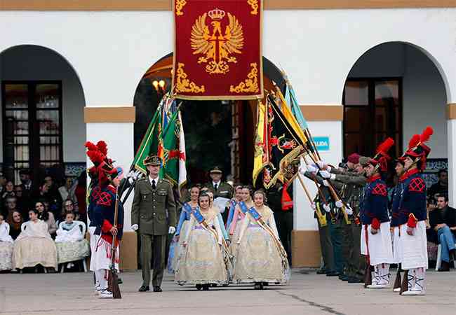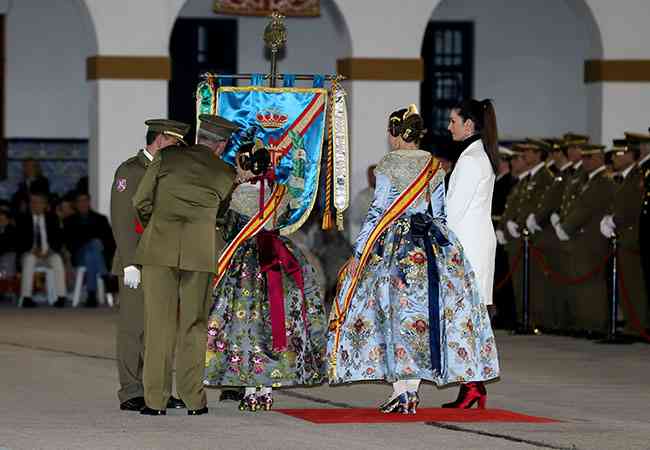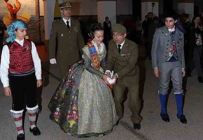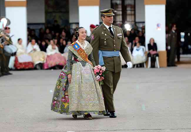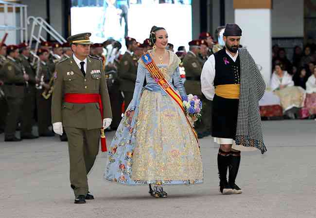 Las Falleras Mayores de Valencia, Rocío Gil y Daniela Gómez, acompañadas de sus respectivas cortes de honor, acudirían junto al resto del colectivo falleros en la tarde del jueves 8 de marzo, al homenaje que cada año desde 1988 realizan las Fuerzas Armadas y Guardia Civil al pueblo valenciano en el acuartelamiento San Juan de Ribera.