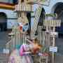Daniela lució un modelo en color gris antracita confeccionado por Flor de Cotó, con aderezo de Peris Roca, zapatos de Descans y ahuecador de Margarita Vercher. Rocío lució un espolín Carpio de Garín en color azul, con peinetas de Flor d'Aigua.
