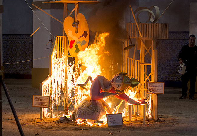 Con un pequeño castillo de fuegos artificiales y la cremà de las fallas finalizaría el acto.