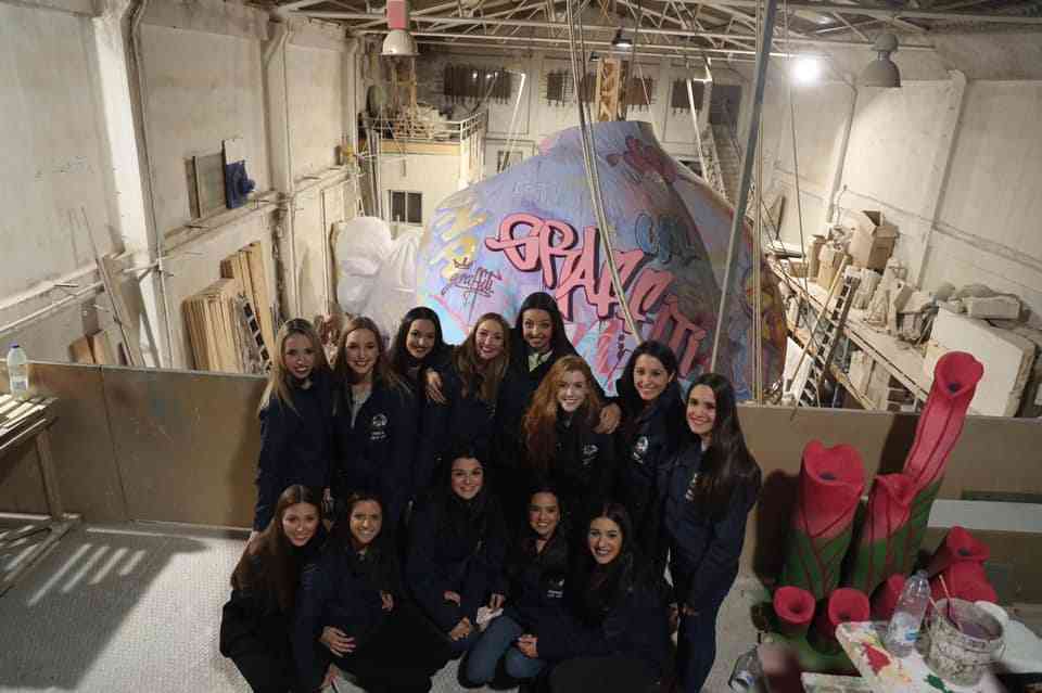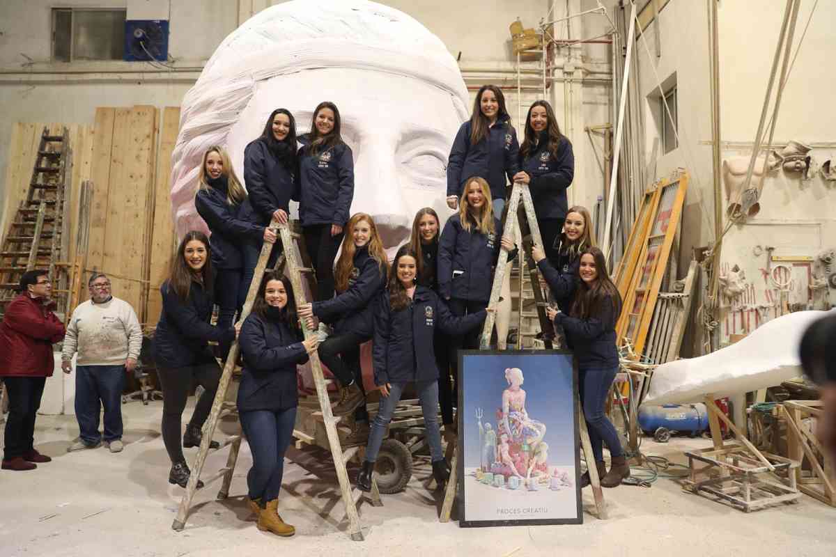 La Fallera Mayor de Valencia y su Corte de Honor realizaron una visita al taller de Latorre y Sanz, donde se construye la falla que se plantará en la plaza del Ayuntamiento en poco más de dos meses.