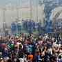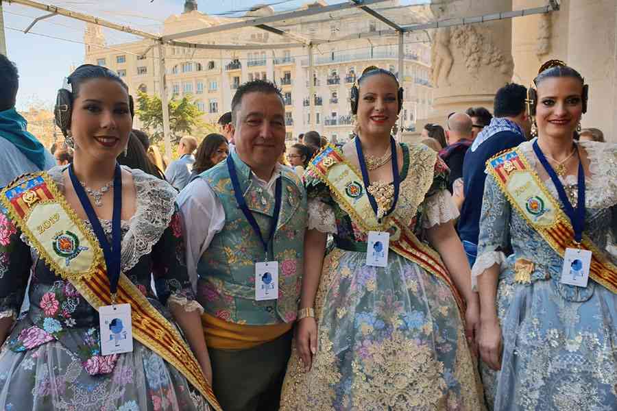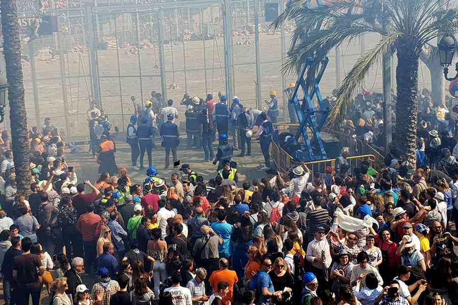 Una plaza abarrota comienza a ver los avances de la falla municipal, como las de otras demarcaciones. En el balcón entre políticos, mises y falleros, se llegaría al no hay billetes.