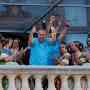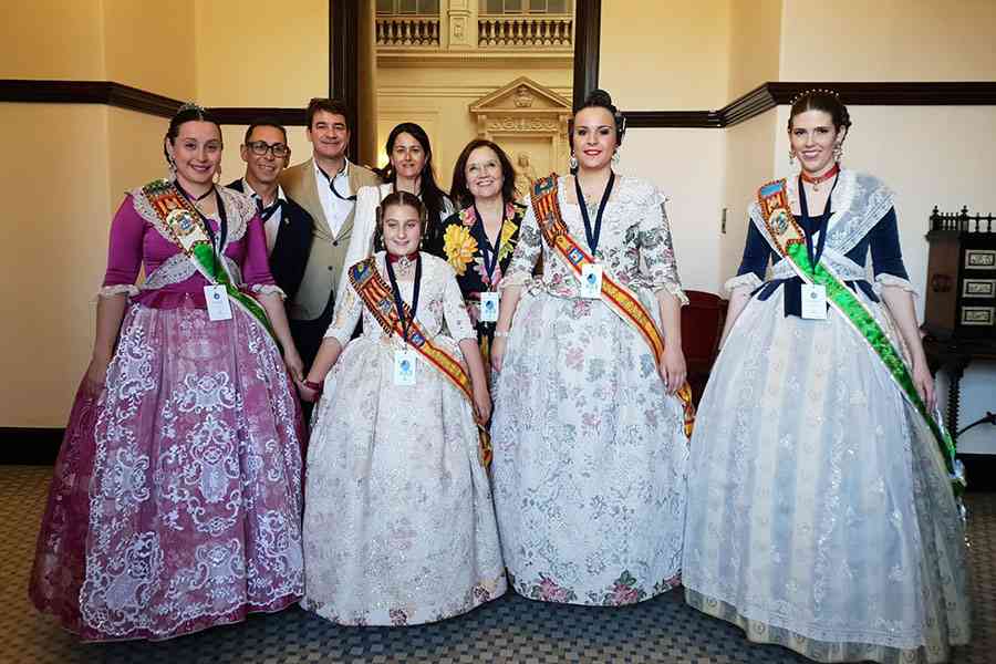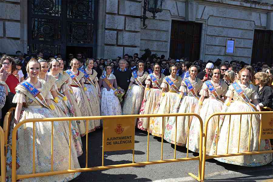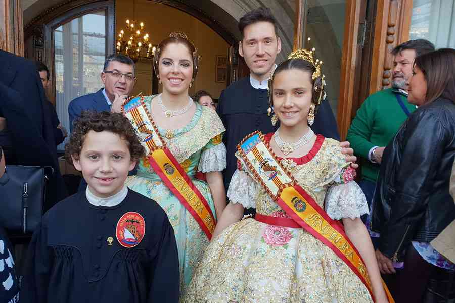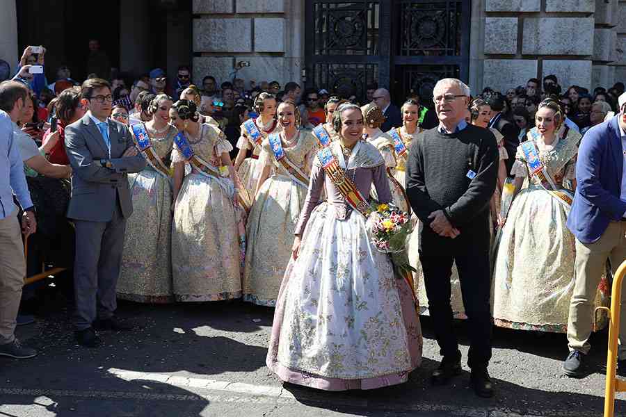 A pie de calle, la Fallera Mayor de Valencia, Marina Civera y su Corte de Honor, se hacían la fotografía de turno con el Alcalde, Joan Ribó. Una de esas fotos que tanto se criticaba antaño por la utilización de las falleras mayores con fines partidistas…