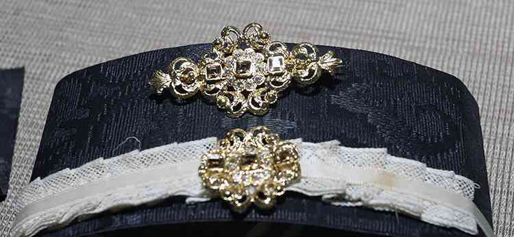 La Corte de Honor la Fallera Mayor Infantil de Valencia lucirá un aderezo acabado en oro con cristales de swarovski blancos; mientras la corte de Consuelo lucirán un aderezo cásico modelo barquillo con cristales de swarovskis dorados, manteniendo la esencia del estilo siglo XVIII.