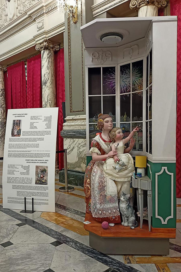 ‘La Pirotècnia, el color de les Falles’, grupo firmado por Carlos Carsí para la fallla L’Antiga de Campanar, y ‘Dia de Pasqua en l'Albufera’, de José Enrique Ginestar para la falla Almirante Cadarso-Conde de Altea, Ninots Indultats 2023, pueden contemplarse esta semana en el Salón de Cristal del Ayuntamiento de Valencia.