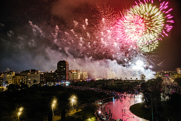 Las Fallas llegan con toda la atracción y la intensidad de una fiesta Patrimonio de la Humanidad como la nuestra. Por ello, su programa oficial de festejos se reviste tanto de solemnidad como de momentos para el ocio total y la diversión, destacando, por ejemplo, el programa pirotécnico que incluye las 19 mascletaes del ciclo fallero, además de espectáculos pirotécnicos los fines de semana previos a la semana fallera y, por supuesto, los castillos de fuegos artificiales de Fallas, que los días 15, 16, 17 y 18, que se disparará la Nit del Foc, iluminarán el cielo de Valencia. Hay que recordar que estos espectáculos tendrán lugar en la zona de la Ciudad de las Artes y las Ciencias y comenzarán a las 23:59 horas.