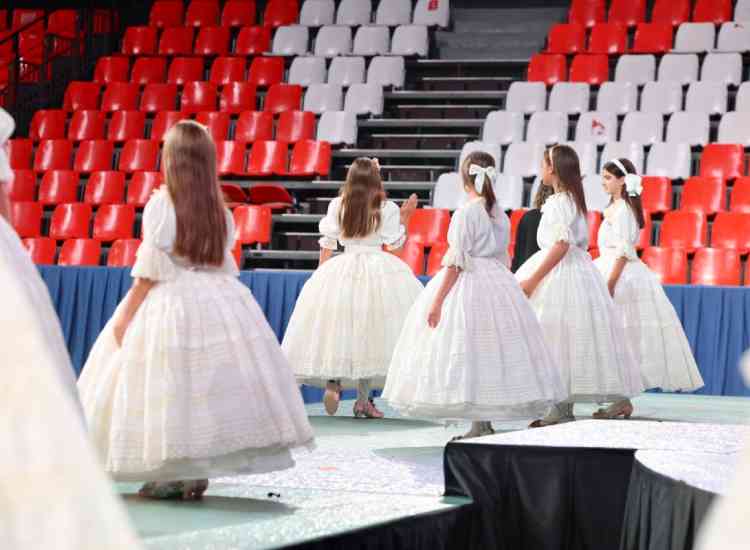 Ayer era el turno de las candidatas mayores e infantiles, que ensayaban su aparición en el escenario y el desfile, uno de los instantes de mayor emoción de la velada.