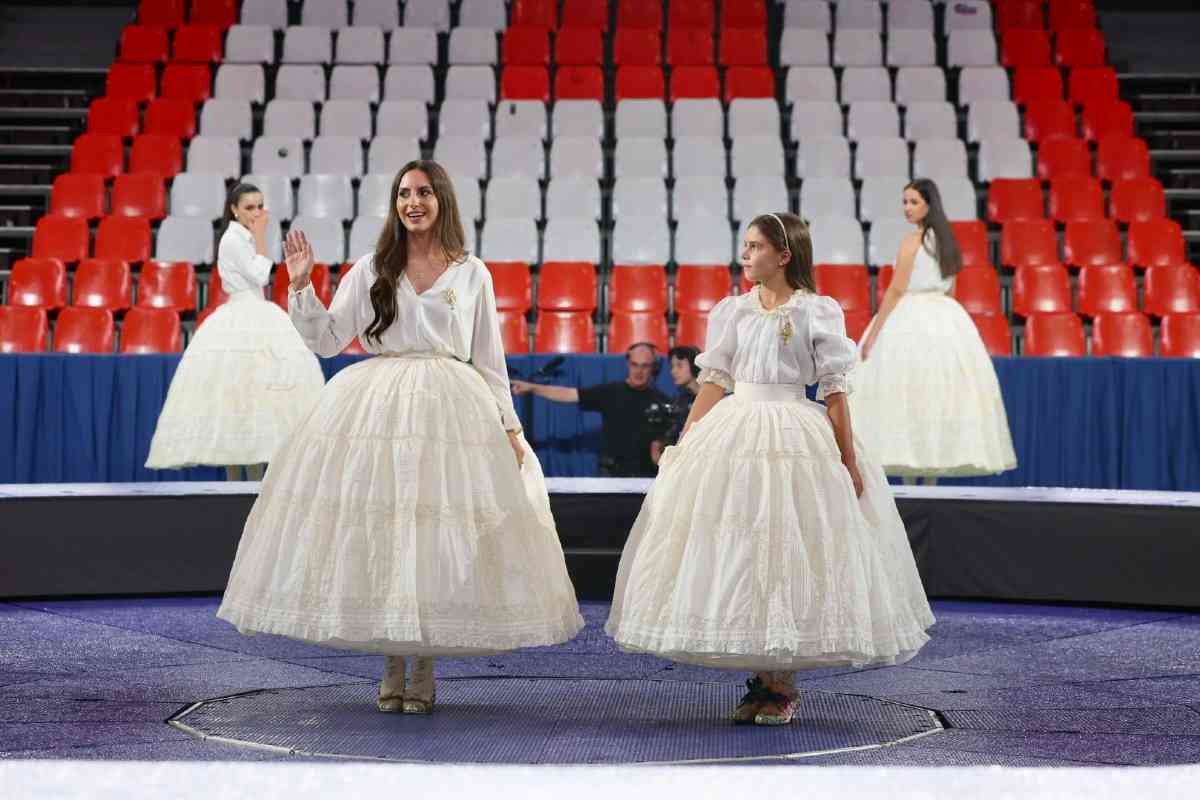 Mañana, a las 20 horas, el pabellón municipal de la Fonteta acogerá la gala de elección en la que conoceremos a las 26 falleras que finalmente optarán a los cargos de Falleras Mayores de Valencia. Y como manda la tradición, las horas previas han estado cargadas de emotividad, mensajes de apoyo en redes sociales a las candidatas por parte de sus comisiones y el adiós progresivo a todo un año de reinado por parte de las que, hasta este momento, han sido las máximas representantes de la fiesta. El año 2024 comenzará a entregar el relevo a 2025 mañana, y por ello, hoy ensayaban en el escenario las Cortes de Honor y las Falleras Mayores, María Estela Arlandis y Marina García, quienes mañana se despedirán públicamente del mundo de la fiesta.