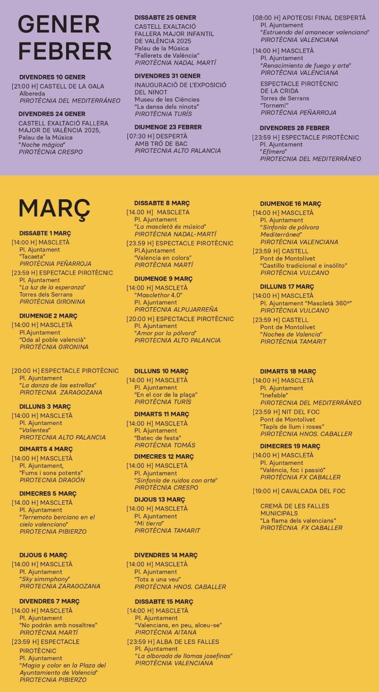 Anoche tuvo lugar la presentación del calendario pirotécnico del año 2025. En el mismo se pueden consultar los espectáculos, castillos de fuegos artificiales y mascletaes del ciclo festivo correspondiente al ejercicio en curso.