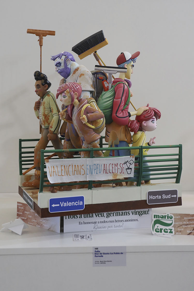 La obra, realizada por el artista fallero Mario Pérez, es un homenaje al Puente de la Solidaridad de la DANA del 29 de octubre, y pertenece a la falla infantil que lleva por lema “Els misteris del Duc”.