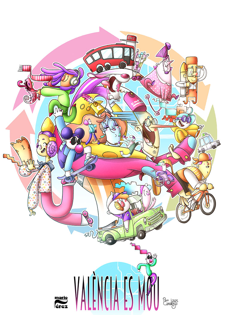 La falla infantil es obra del artista fallero Mario Pérez con diseño de Paco Camallonga; una propuesta didáctica que combina diversos elementos que presentan a nuestra ciudad como una Valencia moderna, avanzada y sostenible. 'Valencia es mou' habla de movimiento urbano y social y jugará precisamente con eso, con lo que «mueve a la ciudadanía y de las movidas que hacen de ella una ciudad dinámica y divertida». Esta falla infantil supone el estreno del artista Mario Pérez en la Plaza del Ayuntamiento, todo un reto que afronta con responsabilidad e ilusión. La parte posterior de la falla incluirá un juego visual que invitará al espectador a adivinar el nombre de las paradas de la red de Metrovalencia. Una falla cautivadora y llena de entretenimiento.