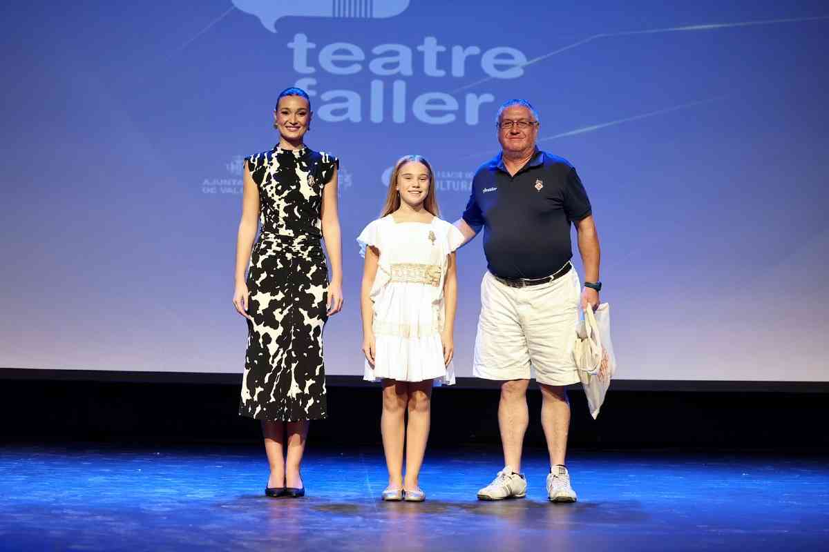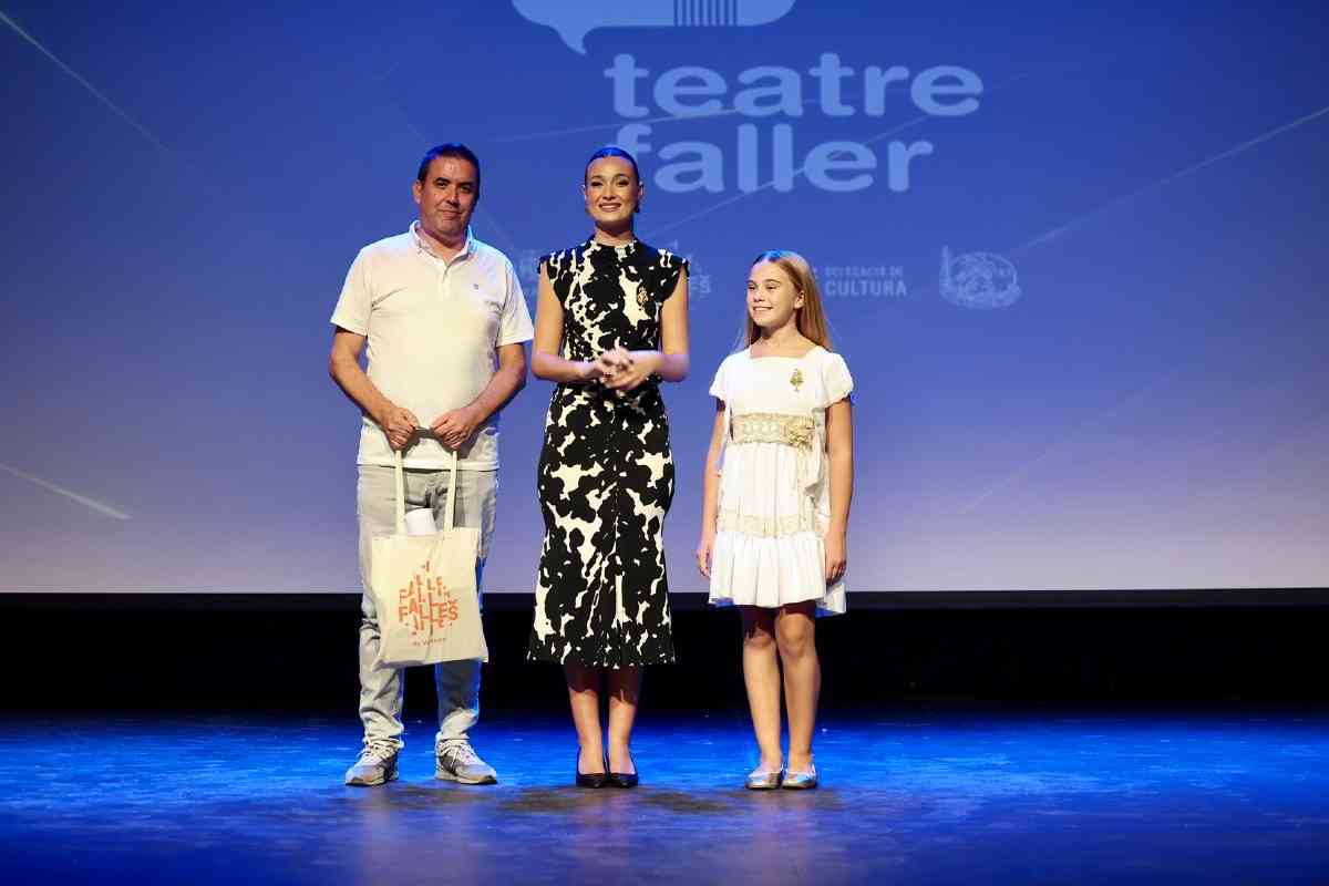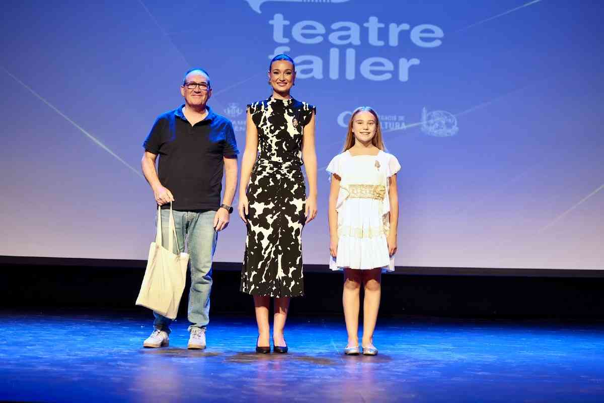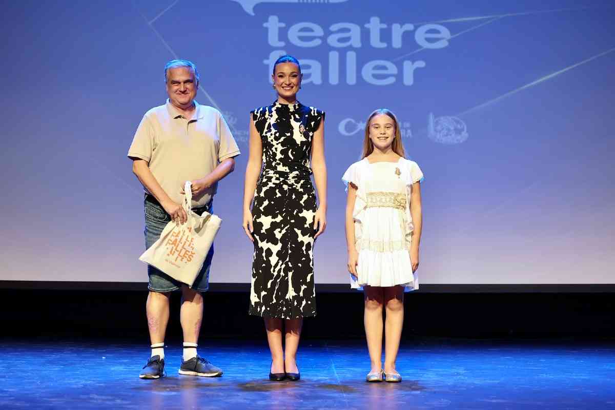 El acto fue presidido por las Falleras Mayores de Valencia, Berta Peiró y Lucía García, acompañadas por la vicepresidenta de Cultura y Solidaridad de JCF, María Fernández, quien agradeció la implicación de los falleros en el fomento de la cultura, el teatro y la lengua valenciana.