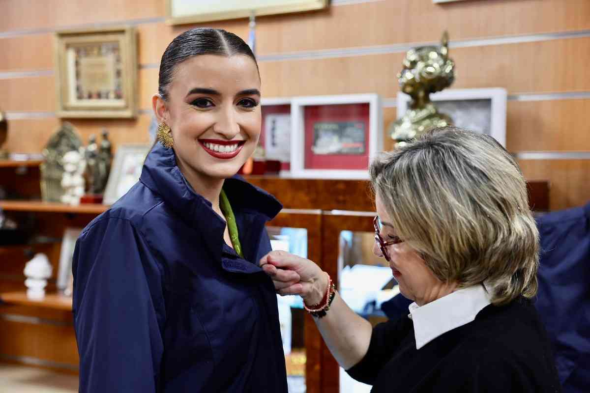 La firma Artesanía Feror abrió ayer las puertas de su taller en Benimàmet para recibir a Carmen Prades y Marta Mercader, máximas representantes de las Fallas de Valencia 2026, que acudieron junto a las componentes de sus respectivas Cortes de Honor. Durante la visita, sus responsables, Javier Ferrándiz y Carmen Mares, supervisaron personalmente la toma de medidas y las primeras pruebas de las prendas que lucirán a lo largo del ejercicio: las parkas oficiales. Esta pieza, convertida desde hace años en un básico imprescindible para los actos más distendidos de la fiesta, comparte protagonismo con el polar y otros elementos que conforman la indumentaria de abrigo de uso habitual en el día a día fallero.