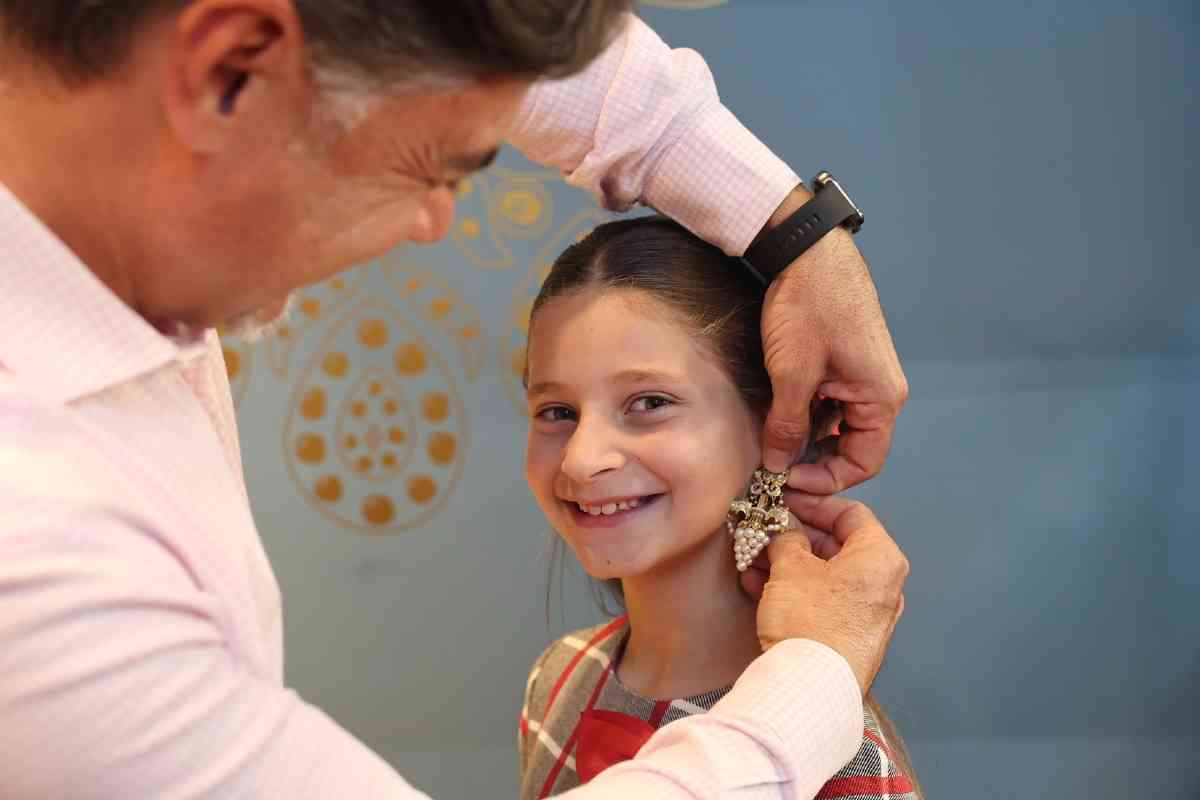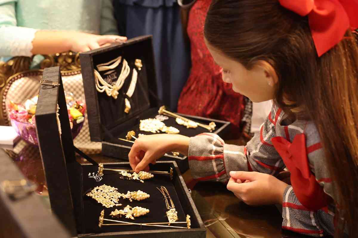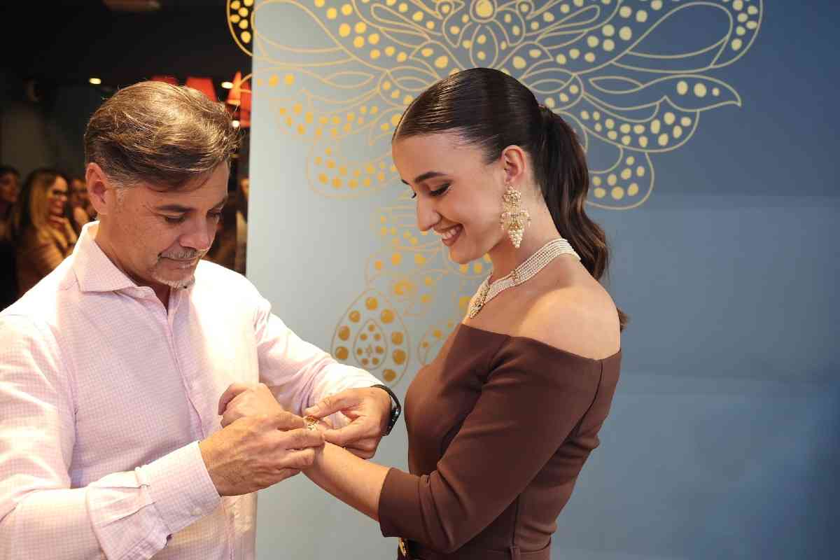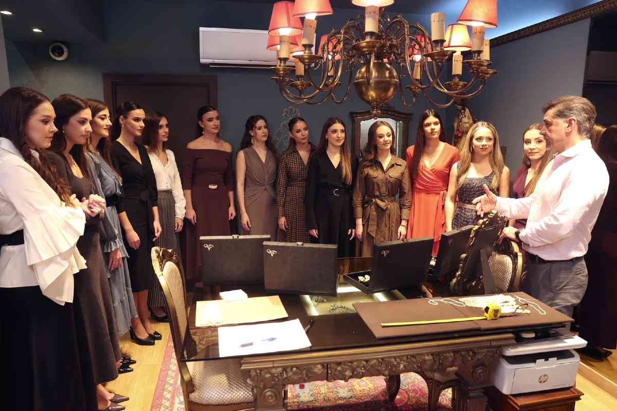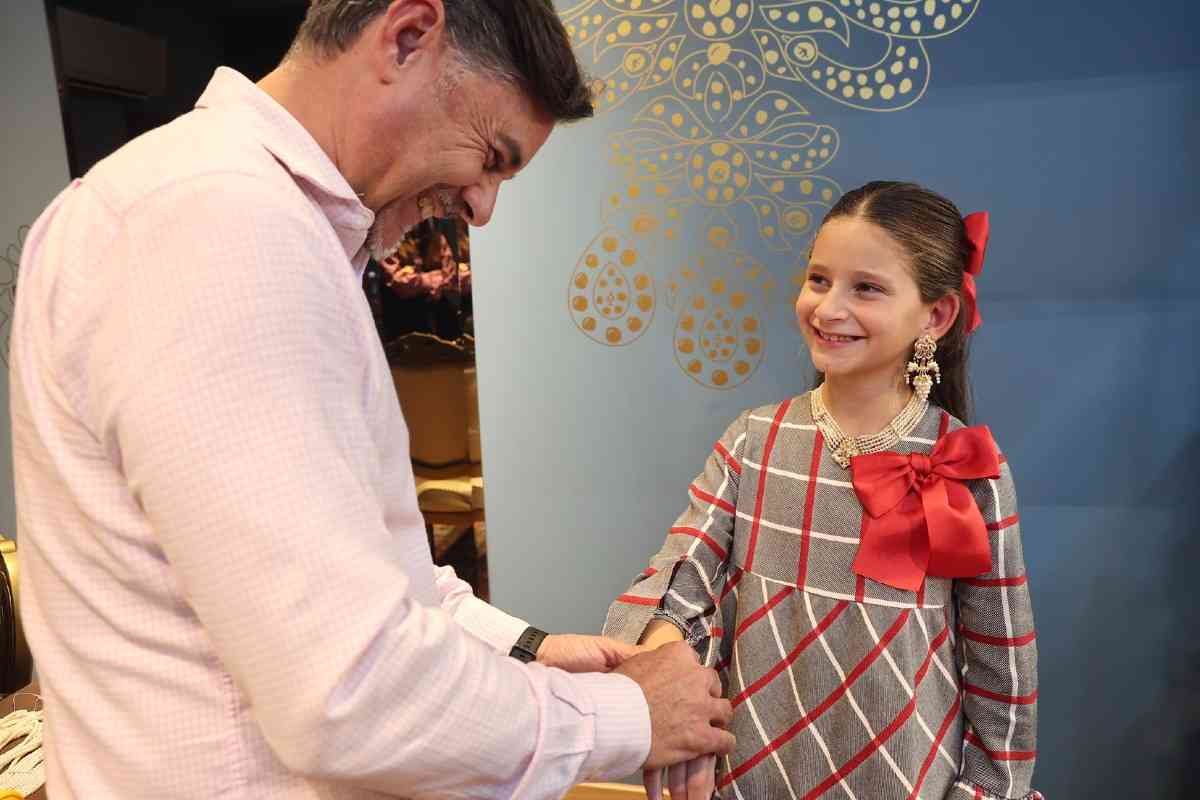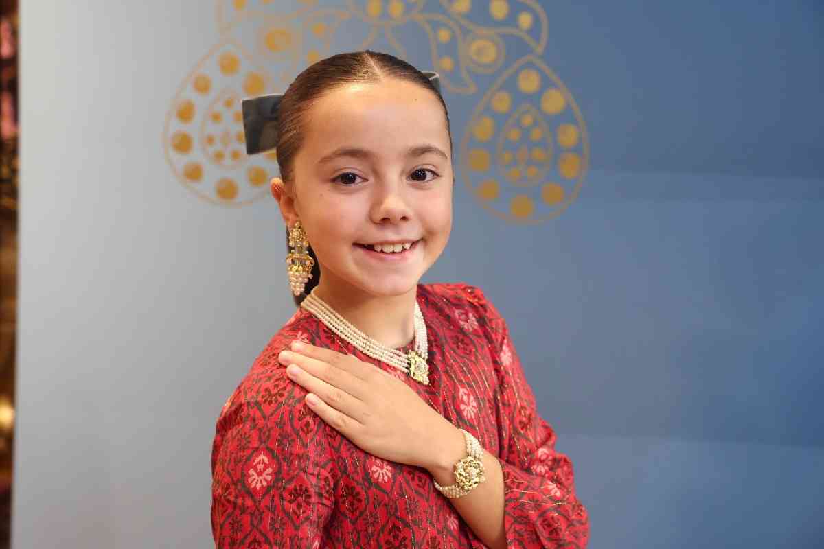 La sede de la firma de joyería artesana Art Antic recibió días atrás la visita de Carmen Prades y Marta Mercader, junto a sus Cortes de Honor. Los hermanos Pepe y David Alabadí atendieron a las representantes falleras, quienes se tomaron medidas con el objeto de ajustar las piezas de sus aderezos oficiales. Y es que, desde 2001, Art Antic es la encargada de los aderezos oficiales de las Falleras Mayores de Valencia y sus Cortes de Honor y desde 2010 de las piezas que lucen con los segundos trajes oficiales.