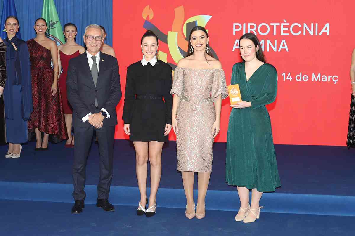 En la gala, como es habitual, se ha distinguido a personas, empresas e instituciones que contribuyen a que la pirotecnia sea valorada como parte esencial de nuestra fiesta, todo un emblema de cultura y tradición. Este año, los reconocimientos han sido para la Asociación Cultural Amigos de la Pirotecnia por sus 25 años de constancia en la difusión de la cultura pirotécnica en las nuevas plataformas de comunicación. También para Cervezas Turia por su compromiso en la continuidad de los grandes espectáculos pirotécnicos. Y junto a ellos, un reconocimiento muy importante a título individual para Núria Martí Botella por toda una vida dedicada al arte de la pirotecnia.